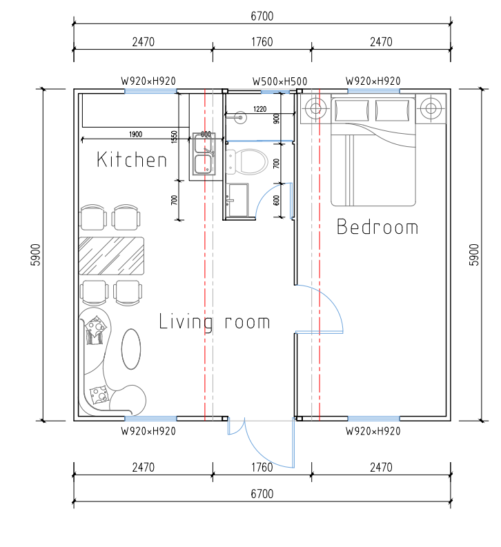The Willow is a 6m (20 ft) long expandable home with a total area of approximately 37 m².